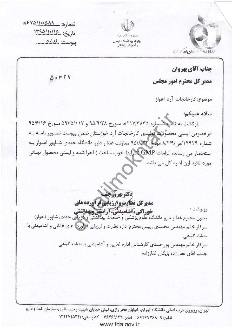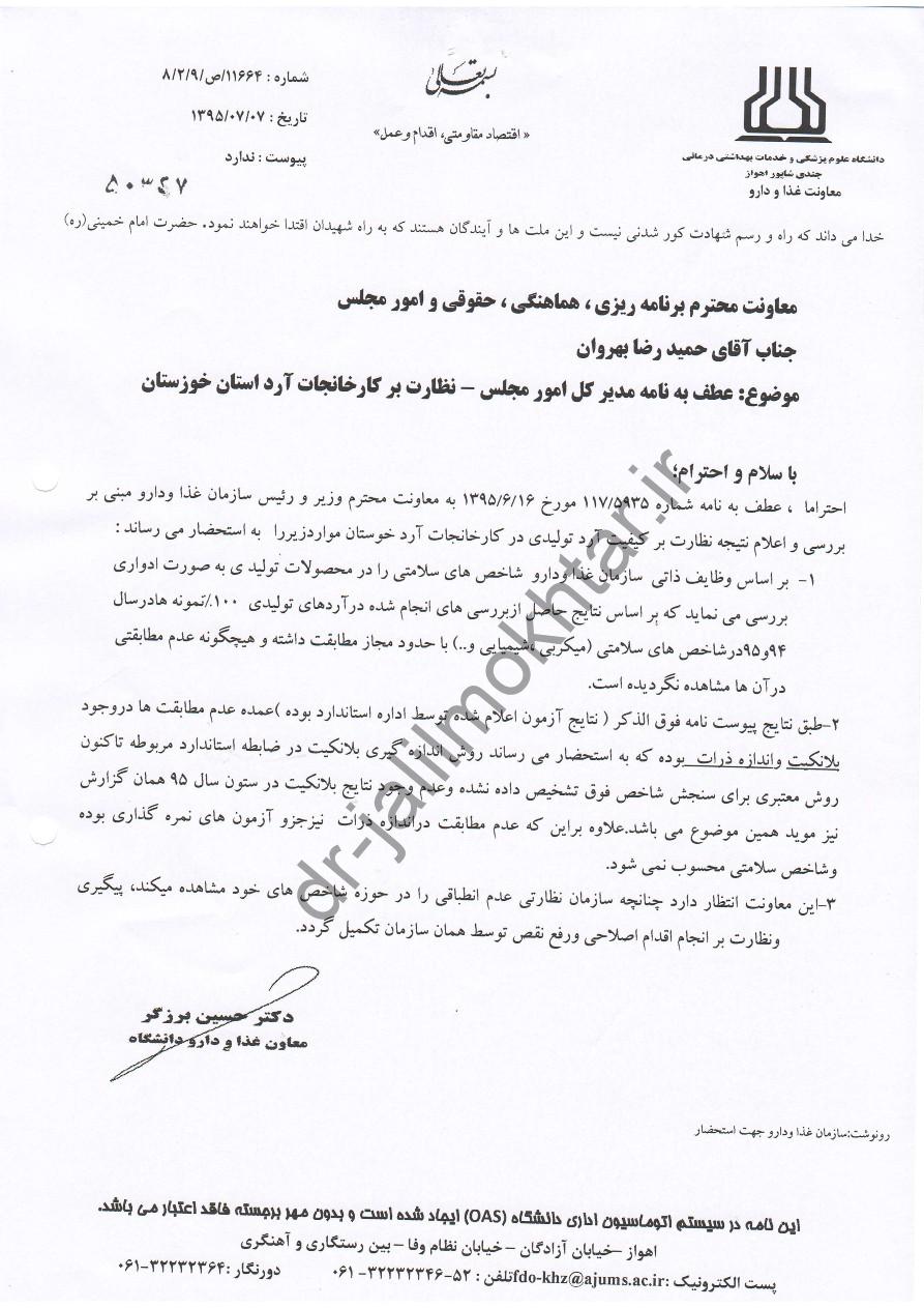 تذکر به وریز در خصوص نظارت به کیفیت آرد تولیدی در کارخانجات آرد خوزستان+ پیگیری ها و پاسخ kh-d 9 سال پیش