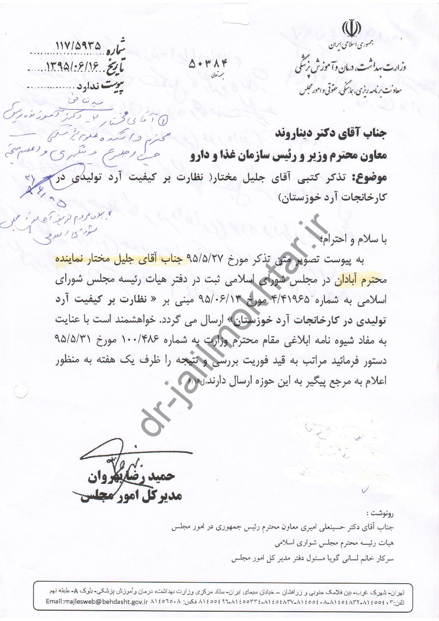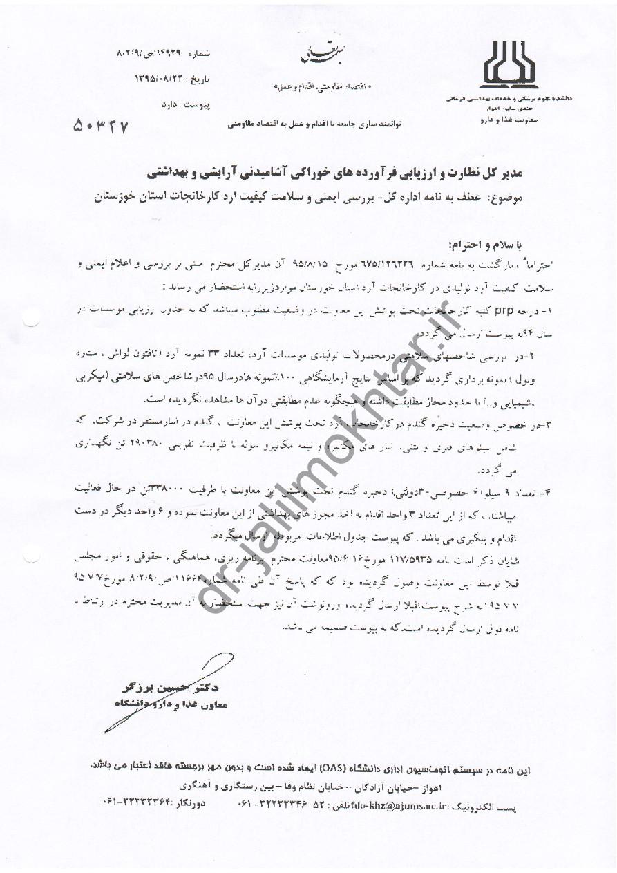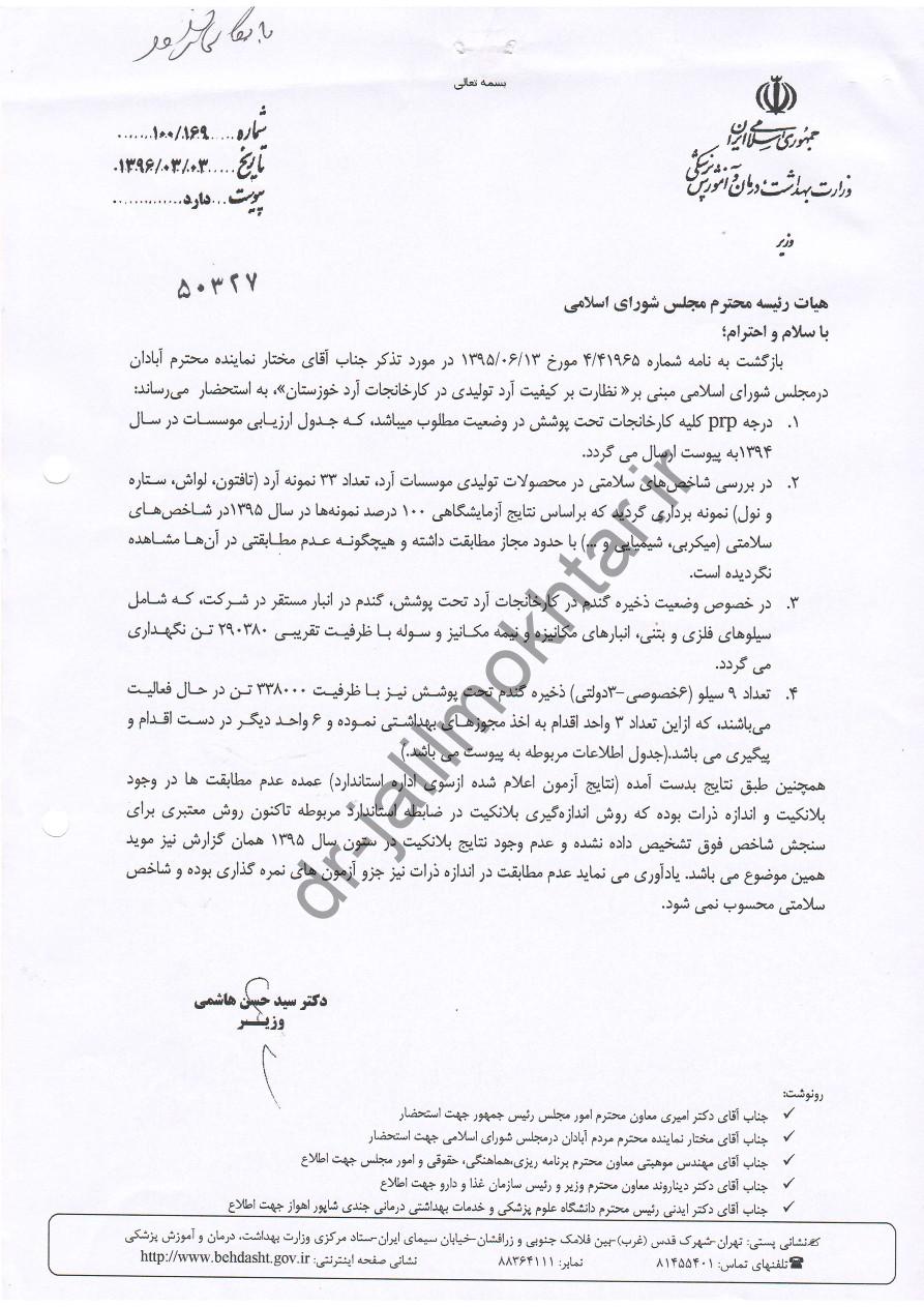 تذکر به وریز در خصوص نظارت به کیفیت آرد تولیدی در کارخانجات آرد خوزستان+ پیگیری ها و پاسخ