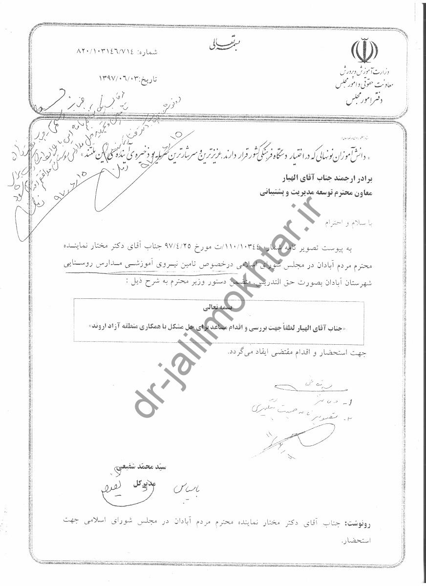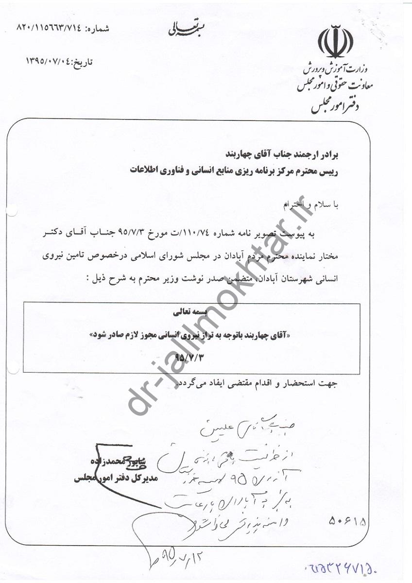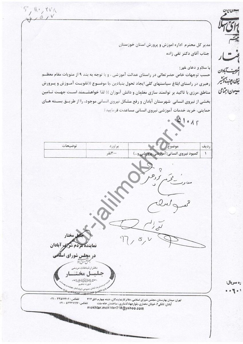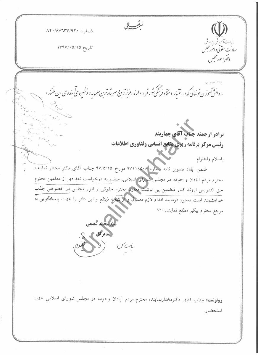پیگیری هادرخصوص تامین نیروی انسانی آموزش و پرورش آبادان + پاسخ ها