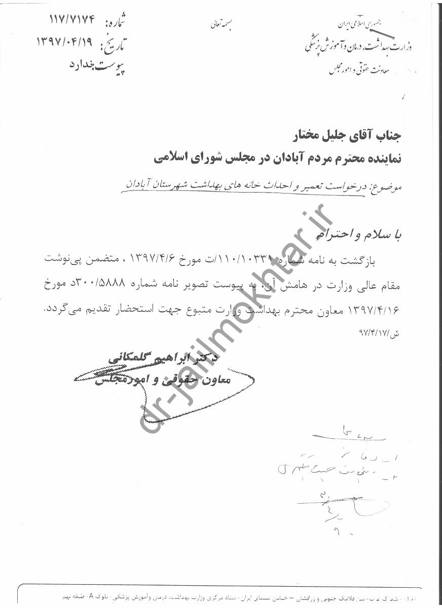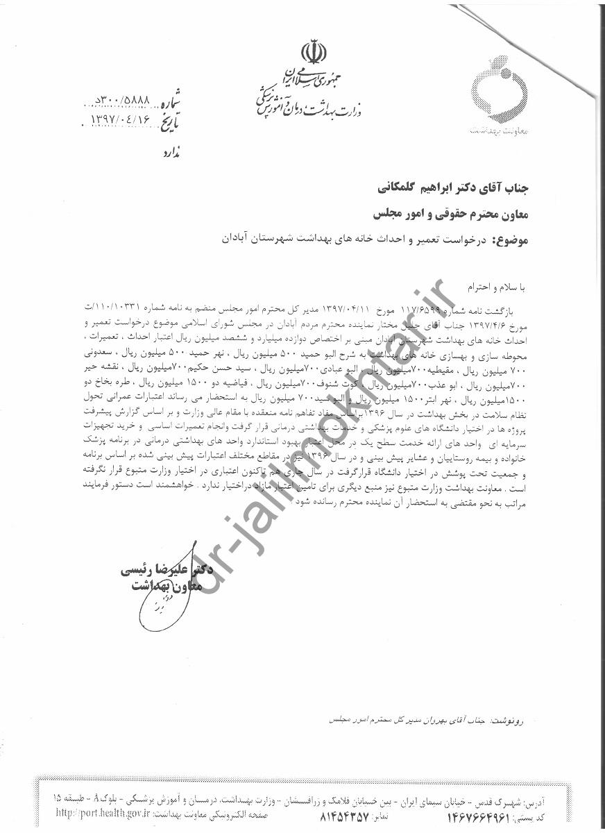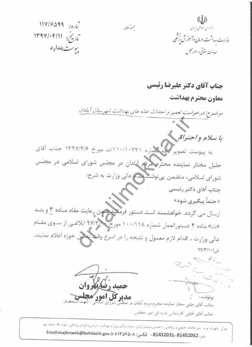 درخواست تعمیر و احداث خانه های بهداشت آبادان + پاسخ