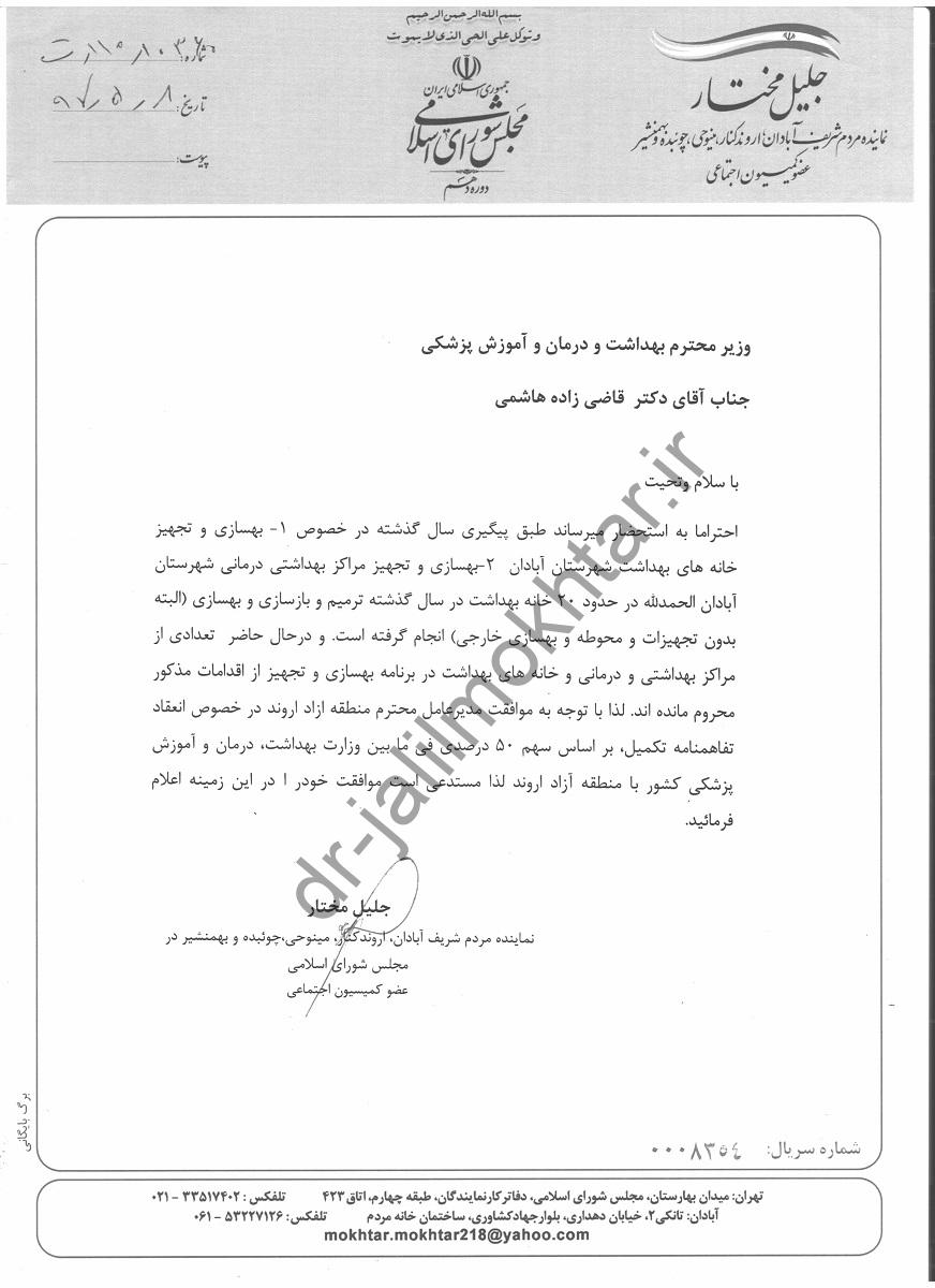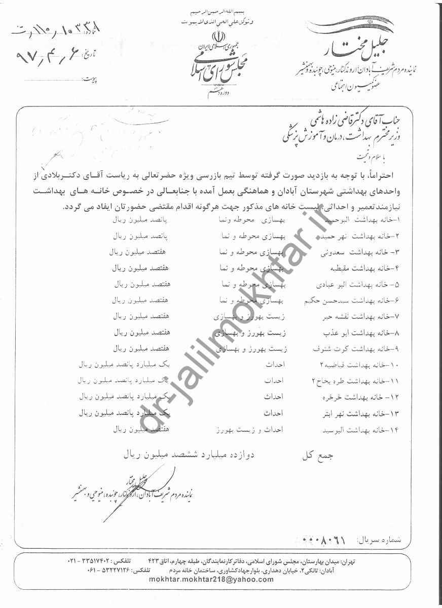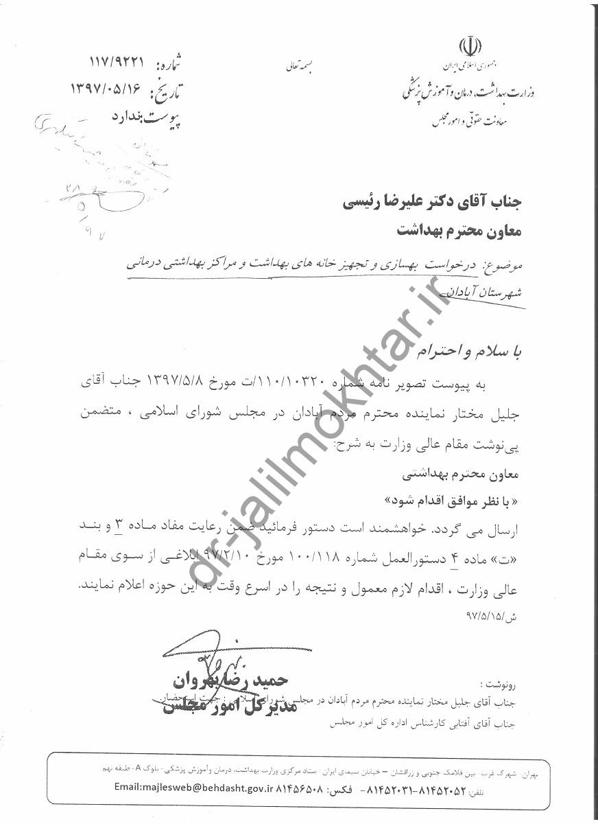 درخواست تعمیر و احداث خانه های بهداشت آبادان + پاسخ