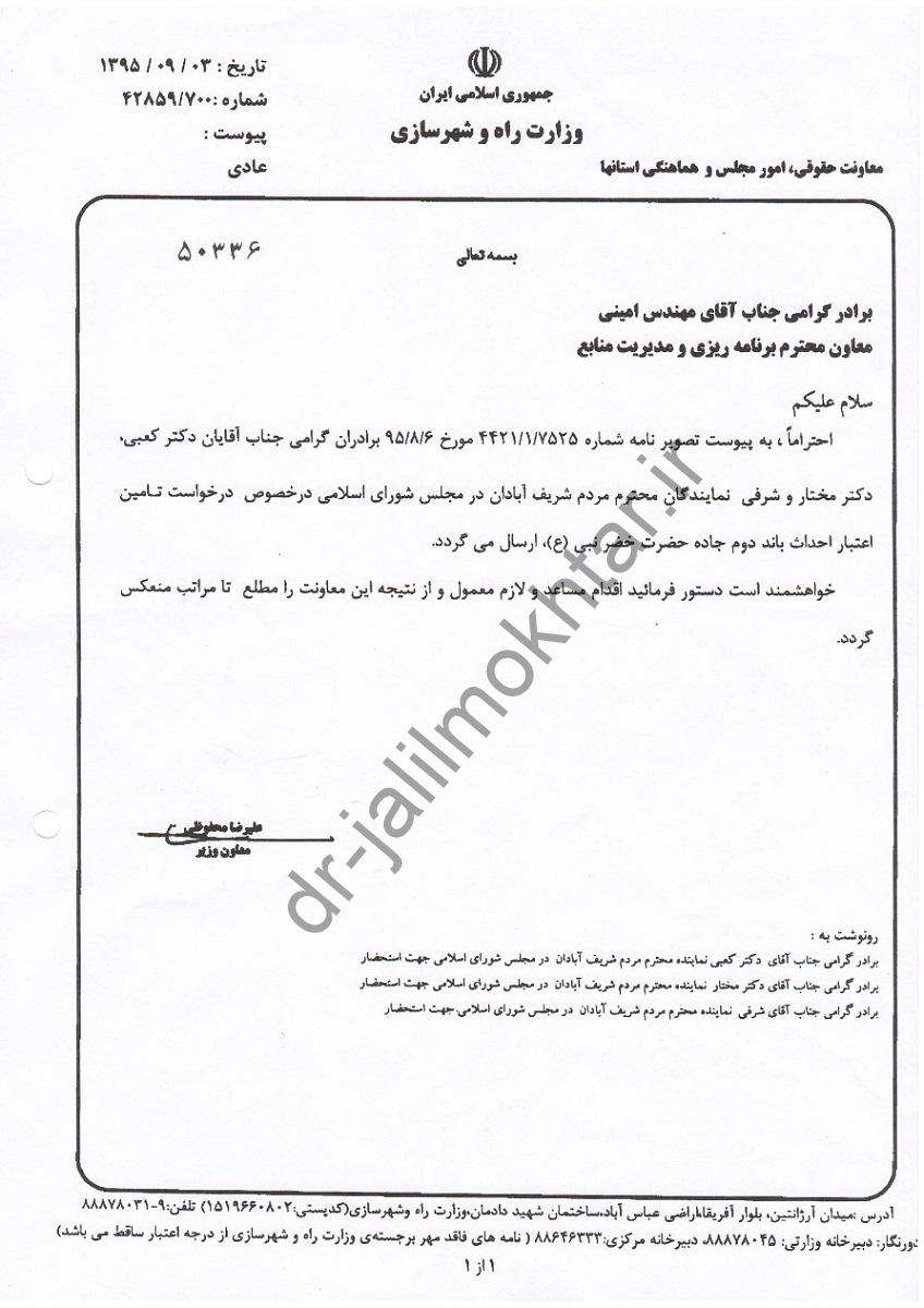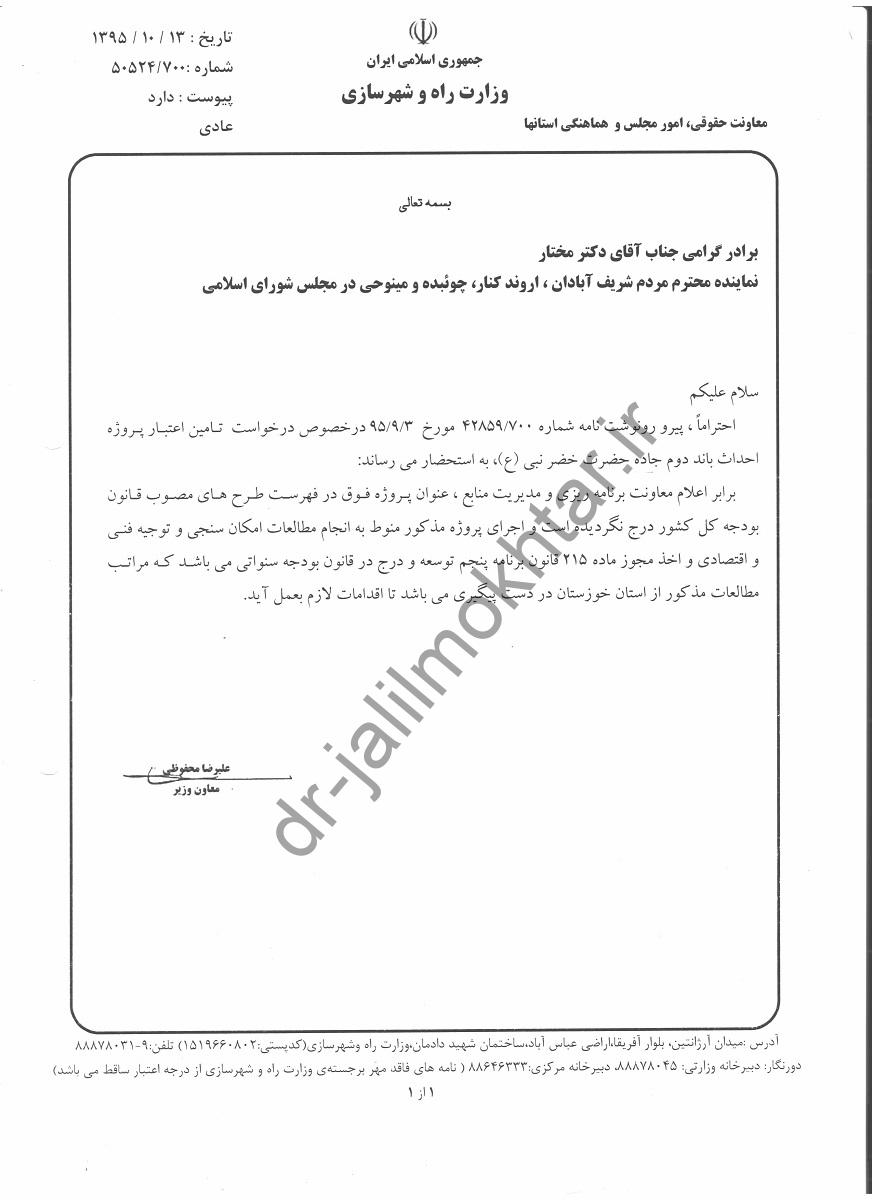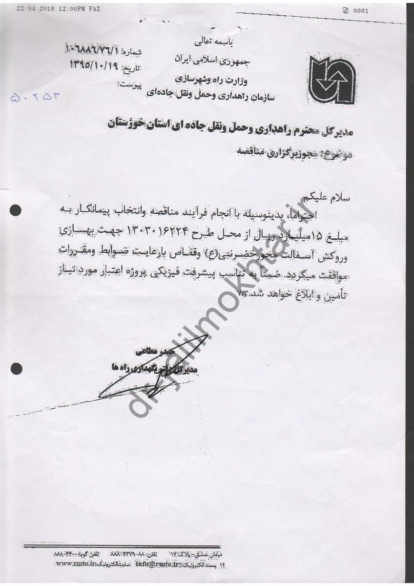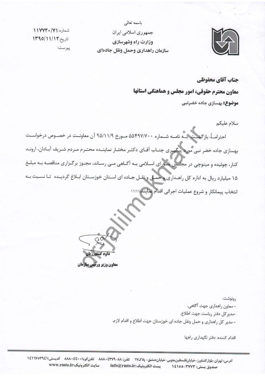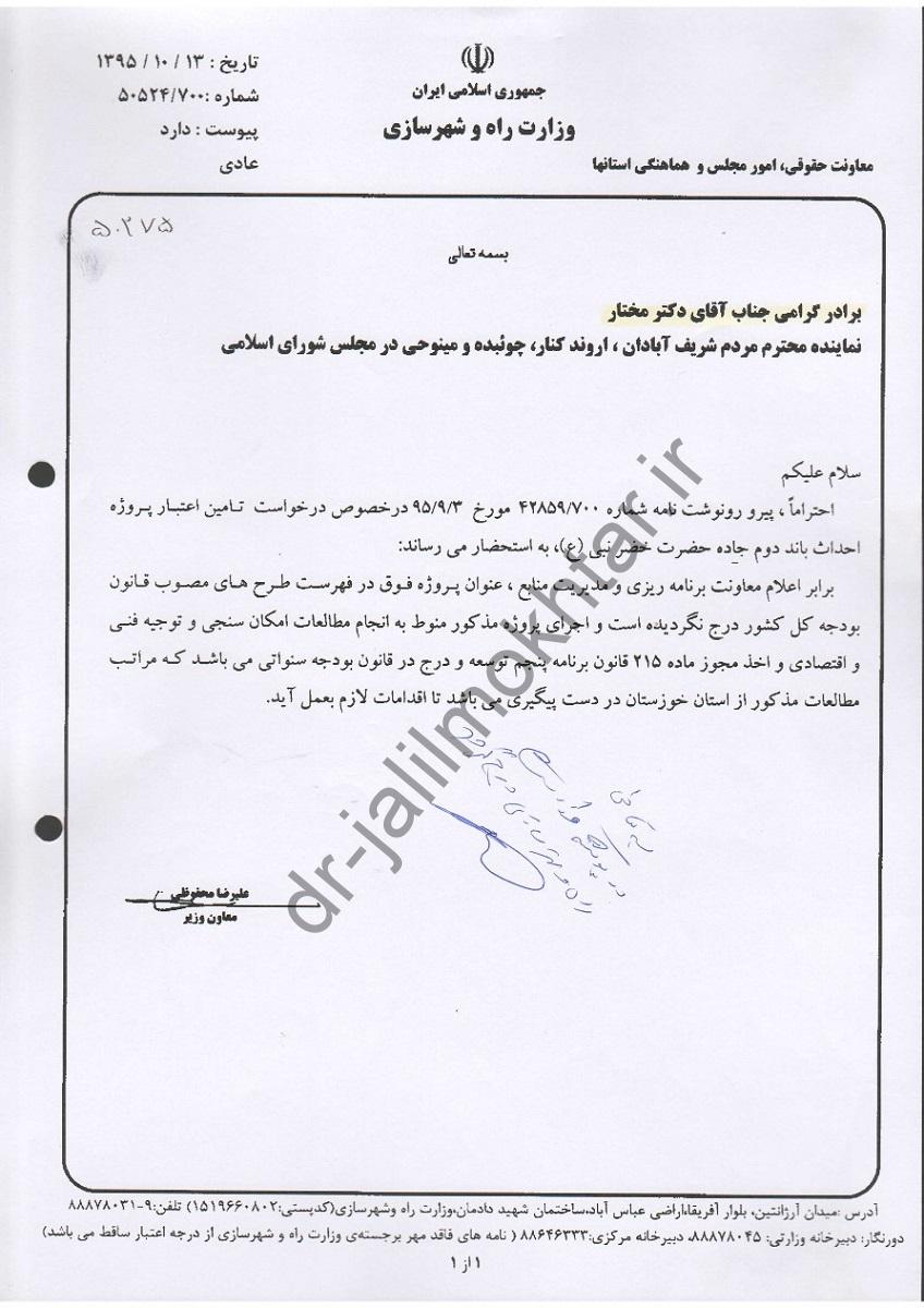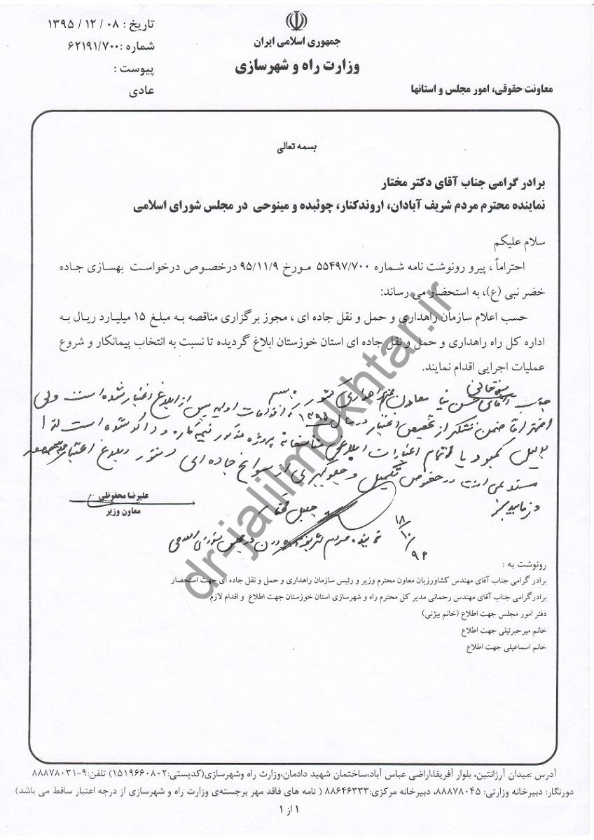 مدیر کل راهداری و حمل نقل جاده ای استان خوزستان – علیرضا محفوظی معاون وزیر – حیدر مطاعی مدیر کل دفتر نگهداری راه ها – قاسمی – زمانی مدیر عامل سازمان منطقه آزاد اروند – مهندس کشاورزیان معاون وزیر و رئیس سازمان راهداری و حمل نقل جاده ای – محمد رضا انصاری مشاور وزیر و مدیر کل حوزه وزارتی – مهندس امینی معاون برنامه ریزی و مدیریت منابع – دکتر آخوندی وزیر راه و شهرسازی – معاون وزیر و رئیس سازمان