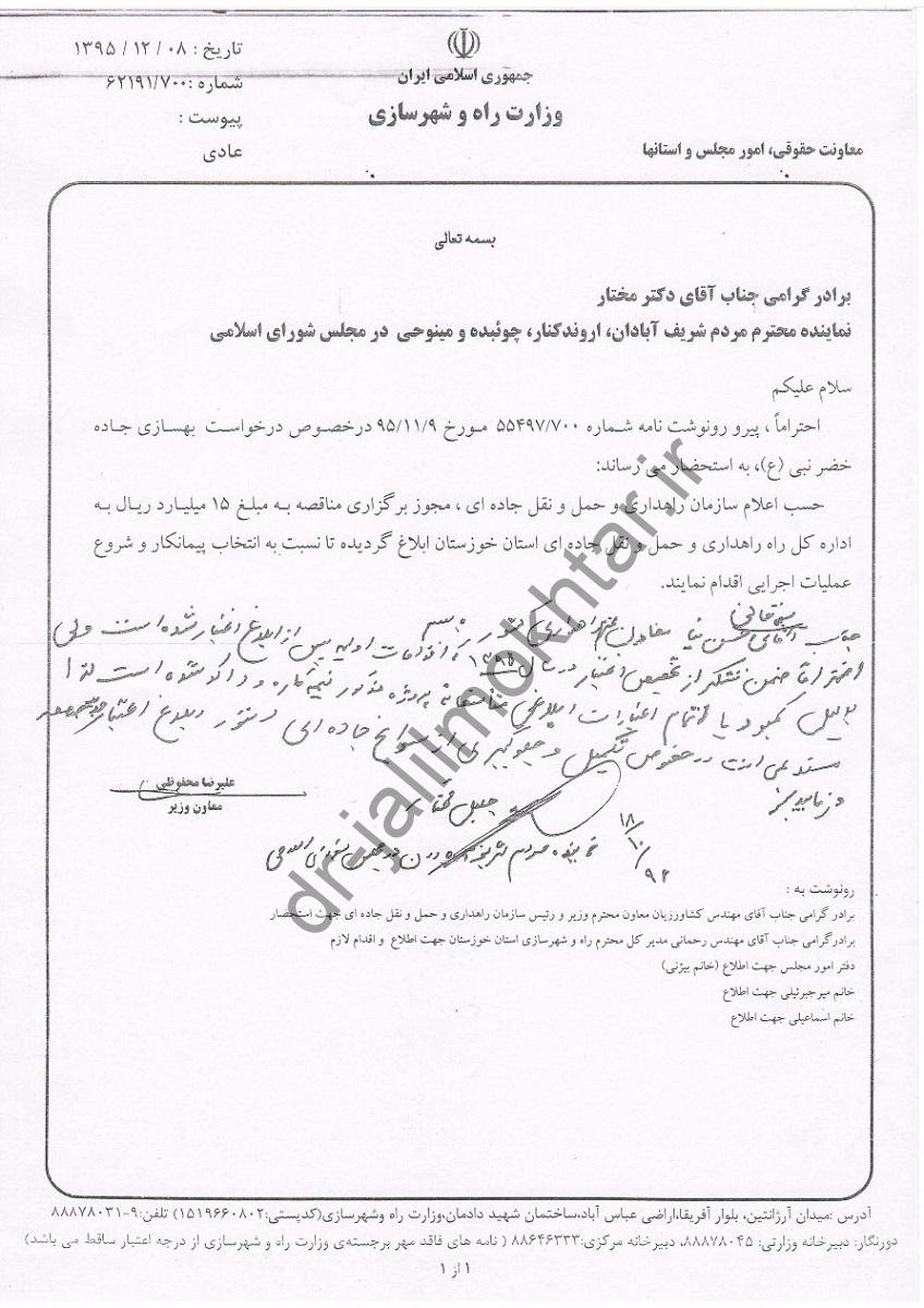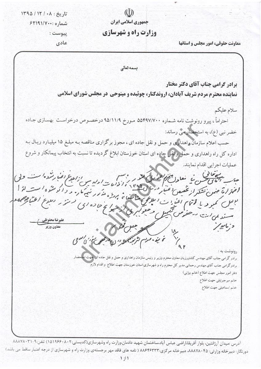 مجموع پیگیری های جاده آبادان – خضر نبی (ع) + پاسخ ها