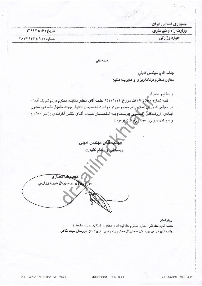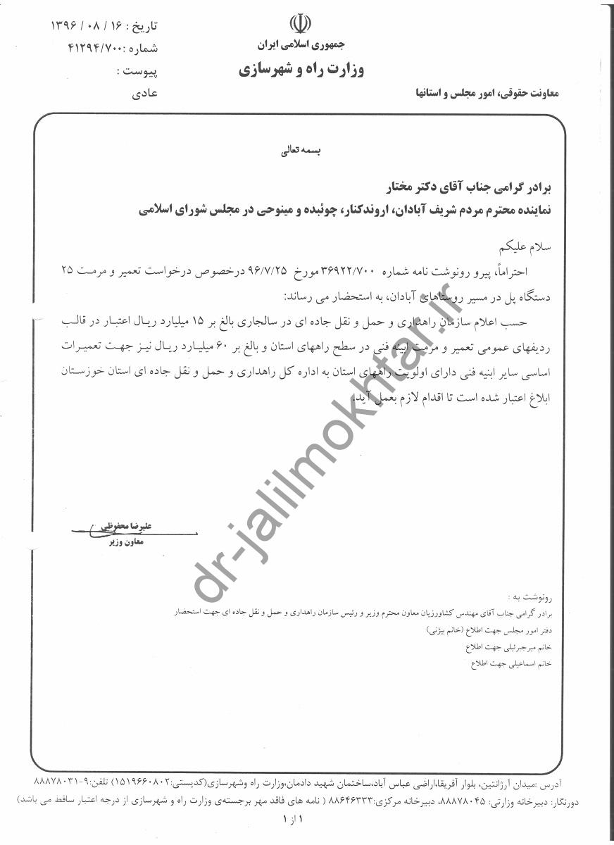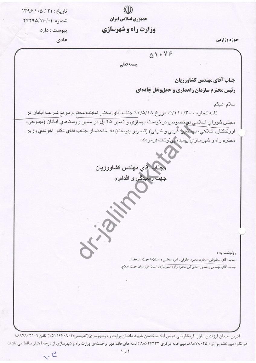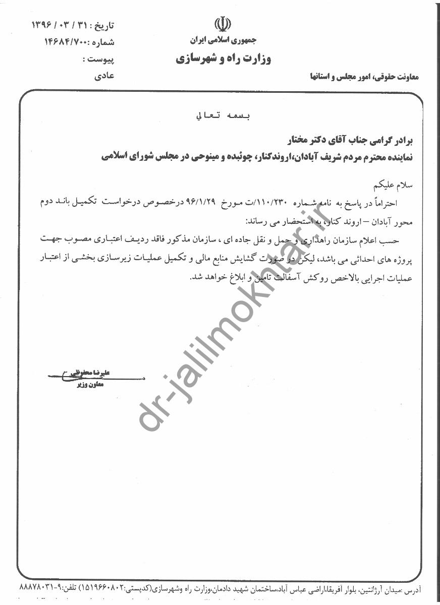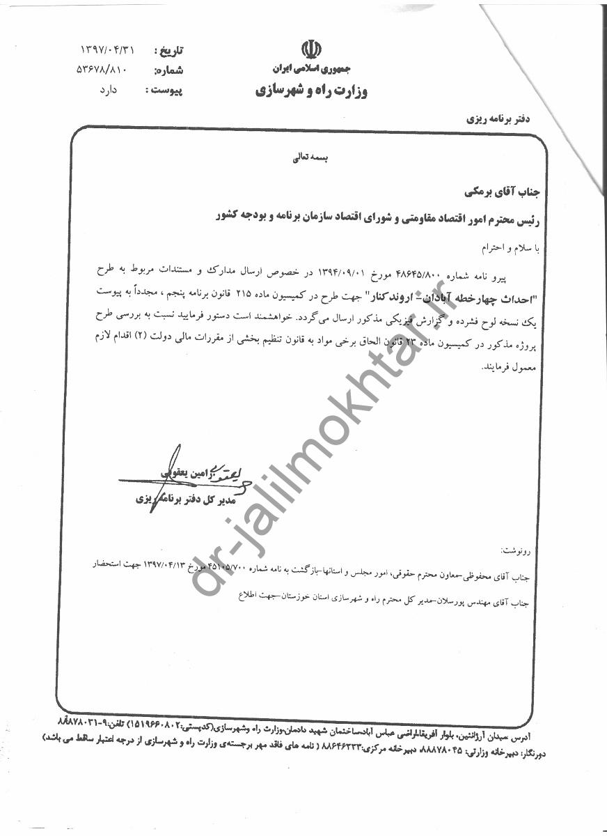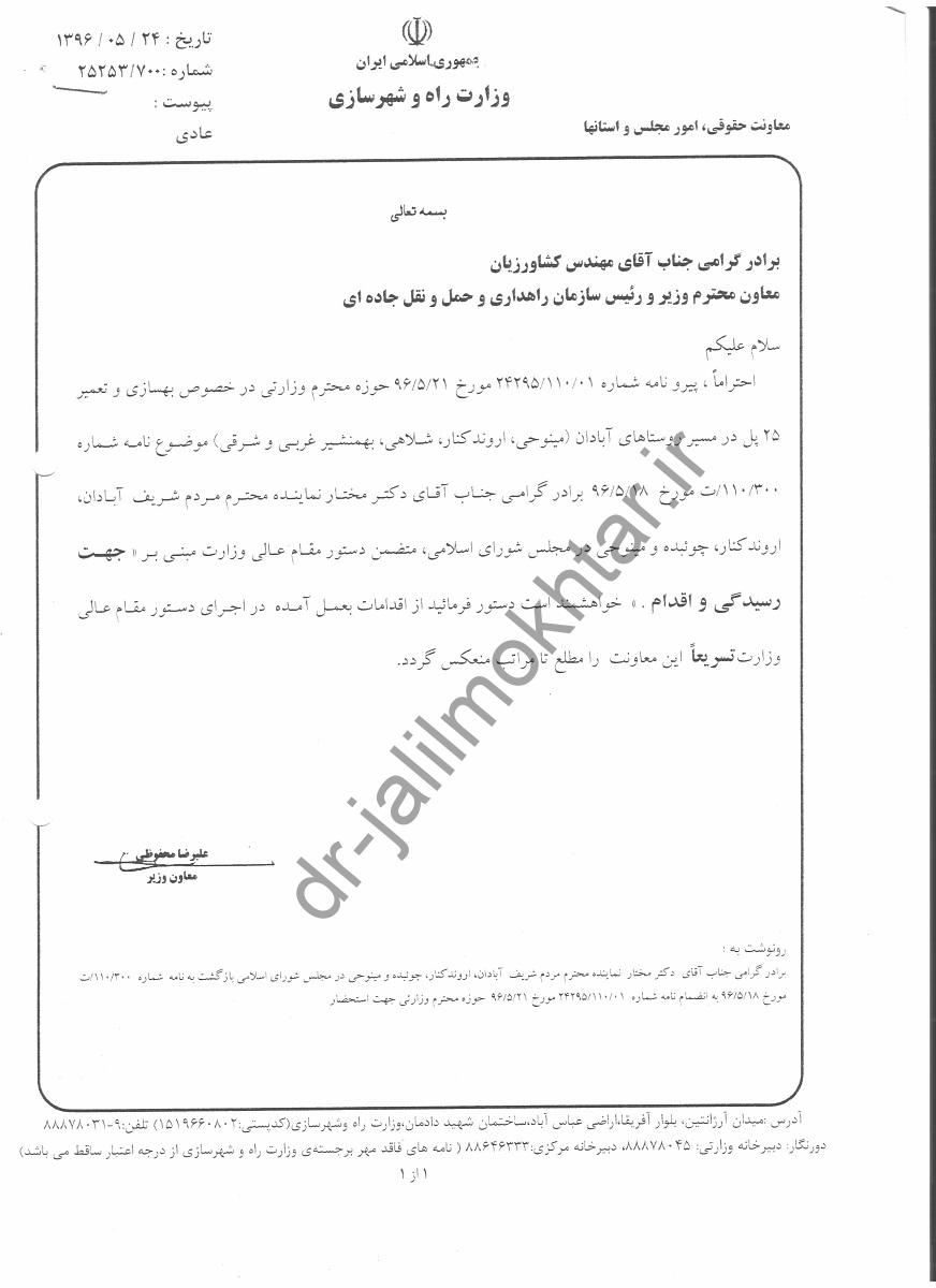 زمانی مدیر عامل سازمان منطقه آزاد اروند – غلامعباس بهرام نیا – حسن نیا عضو محترم هیات عامل و معاون راهداری – مدیر کل محترم راهداری و حمل نقل جاده ای استان خوزستان – حیدر مطاعی مدیر کل دفتر نگهداری راه ها – انصاری مشاور وزیر و مدیر کل حوزه وزارتی – امینی معاون برنامه ریزی و مدیریت منابع – دکتر آخوندی وزیر راه و شهر سازی – علی عماد مشاور و مدیر کل حوزه استانداری – علیرضا محفوظی معاون وزیر – دکتر خادمی معاون وزیر و مدیر عامل شرکت ساخت و توسعه زیربناهای حمل نقل کشوری – کشاورزیان رئیس سازمان راهداری و حمل نقل جاده ای – صدیقه نظاری مدیر کل دفتر امور مجلس –