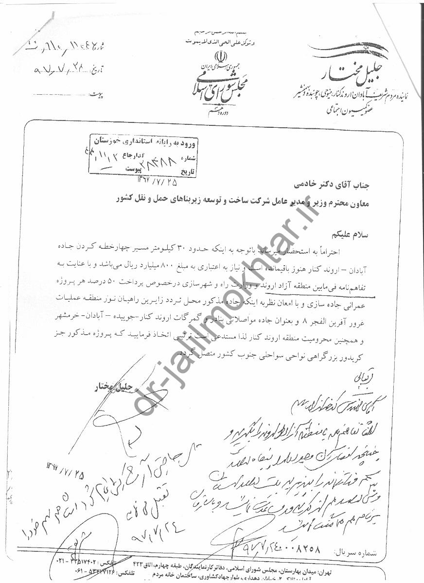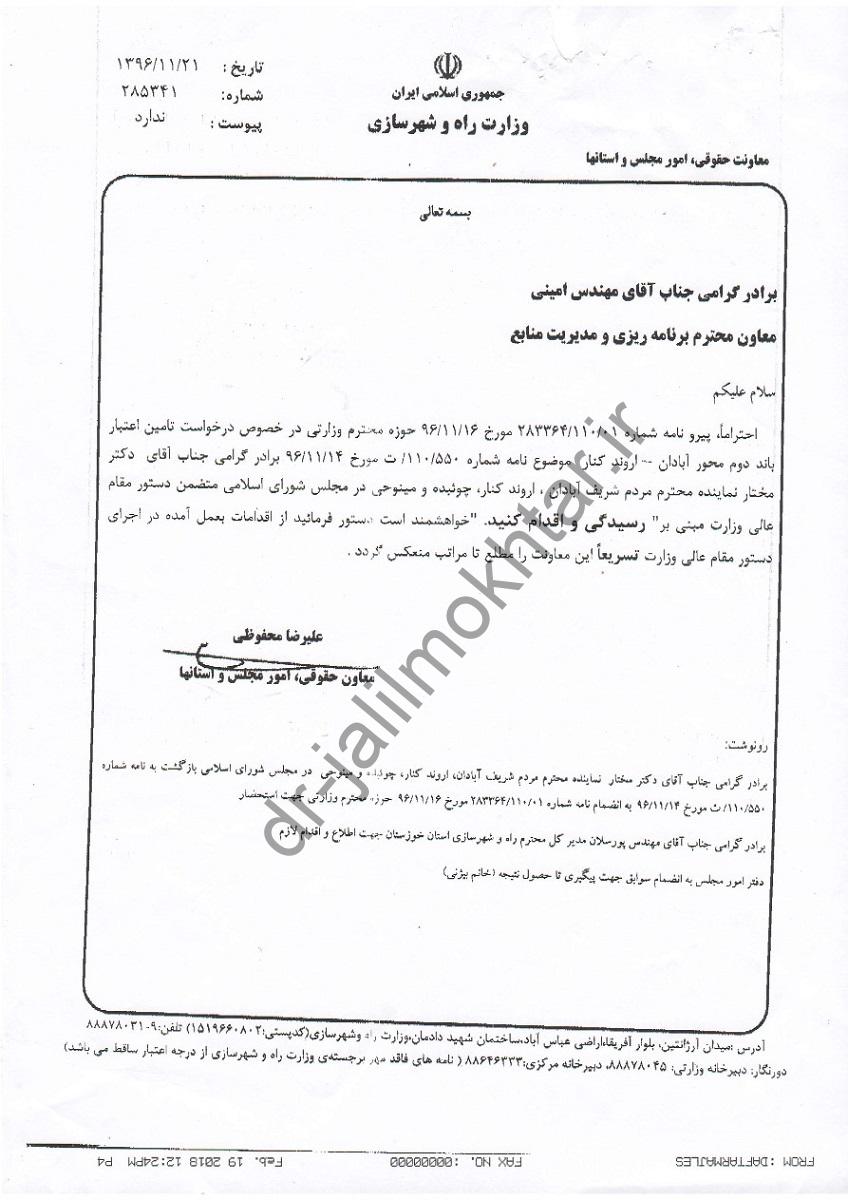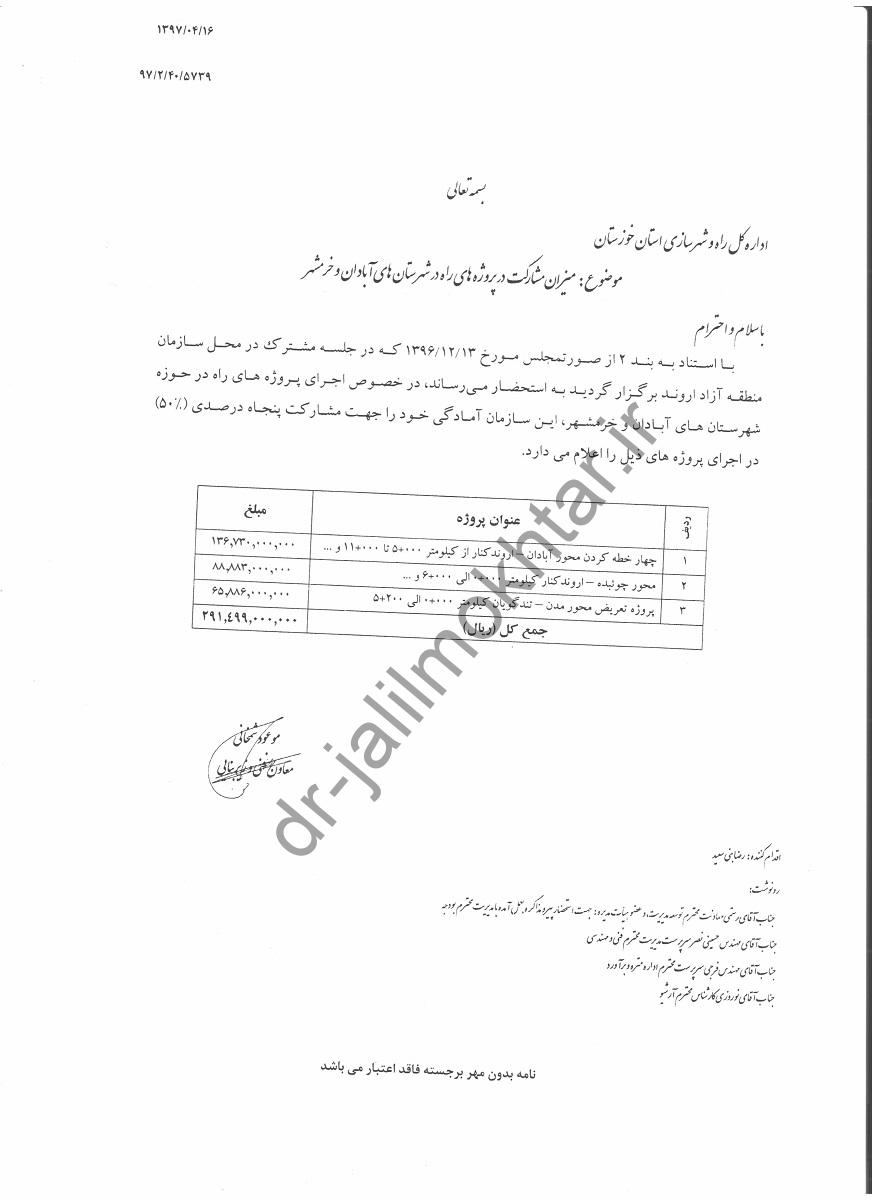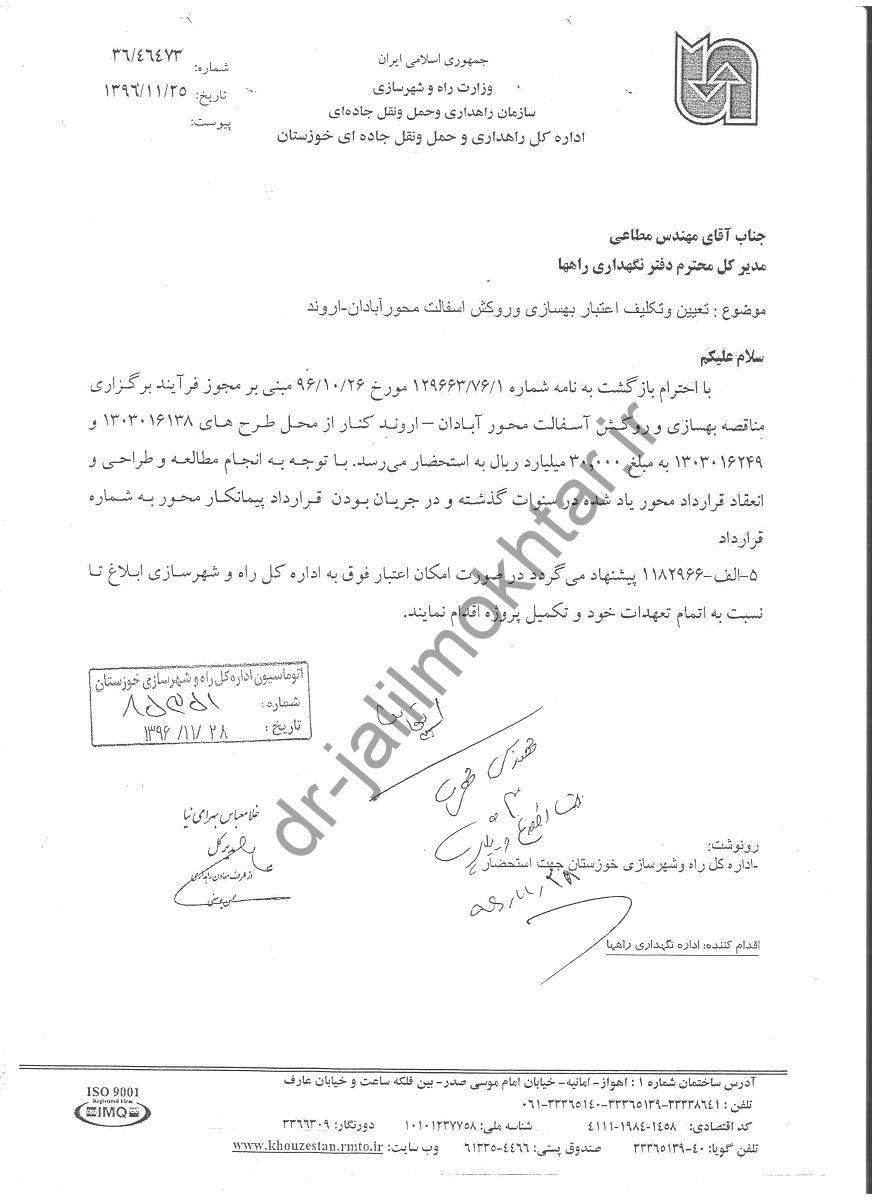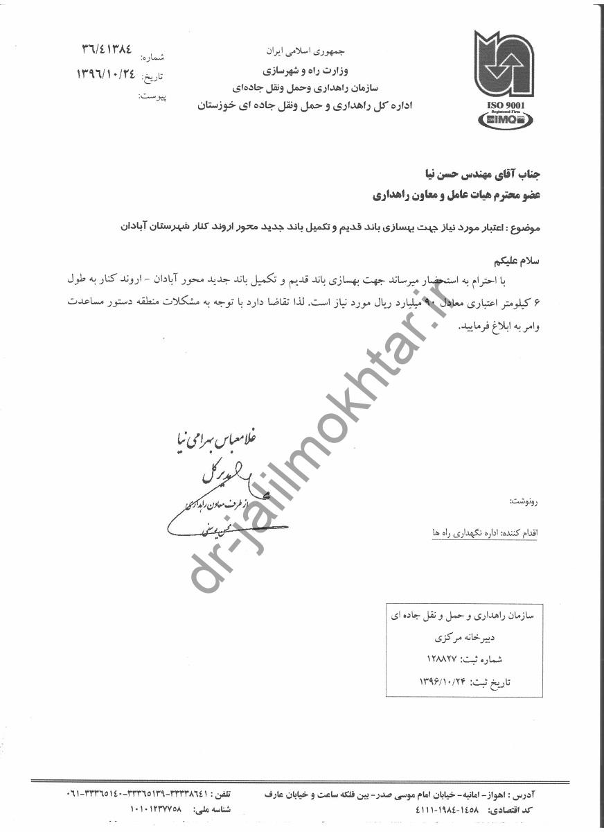 زمانی مدیر عامل سازمان منطقه آزاد اروند – غلامعباس بهرام نیا – حسن نیا عضو محترم هیات عامل و معاون راهداری – مدیر کل محترم راهداری و حمل نقل جاده ای استان خوزستان – حیدر مطاعی مدیر کل دفتر نگهداری راه ها – انصاری مشاور وزیر و مدیر کل حوزه وزارتی – امینی معاون برنامه ریزی و مدیریت منابع – دکتر آخوندی وزیر راه و شهر سازی – علی عماد مشاور و مدیر کل حوزه استانداری – علیرضا محفوظی معاون وزیر – دکتر خادمی معاون وزیر و مدیر عامل شرکت ساخت و توسعه زیربناهای حمل نقل کشوری – کشاورزیان رئیس سازمان راهداری و حمل نقل جاده ای – صدیقه نظاری مدیر کل دفتر امور مجلس –