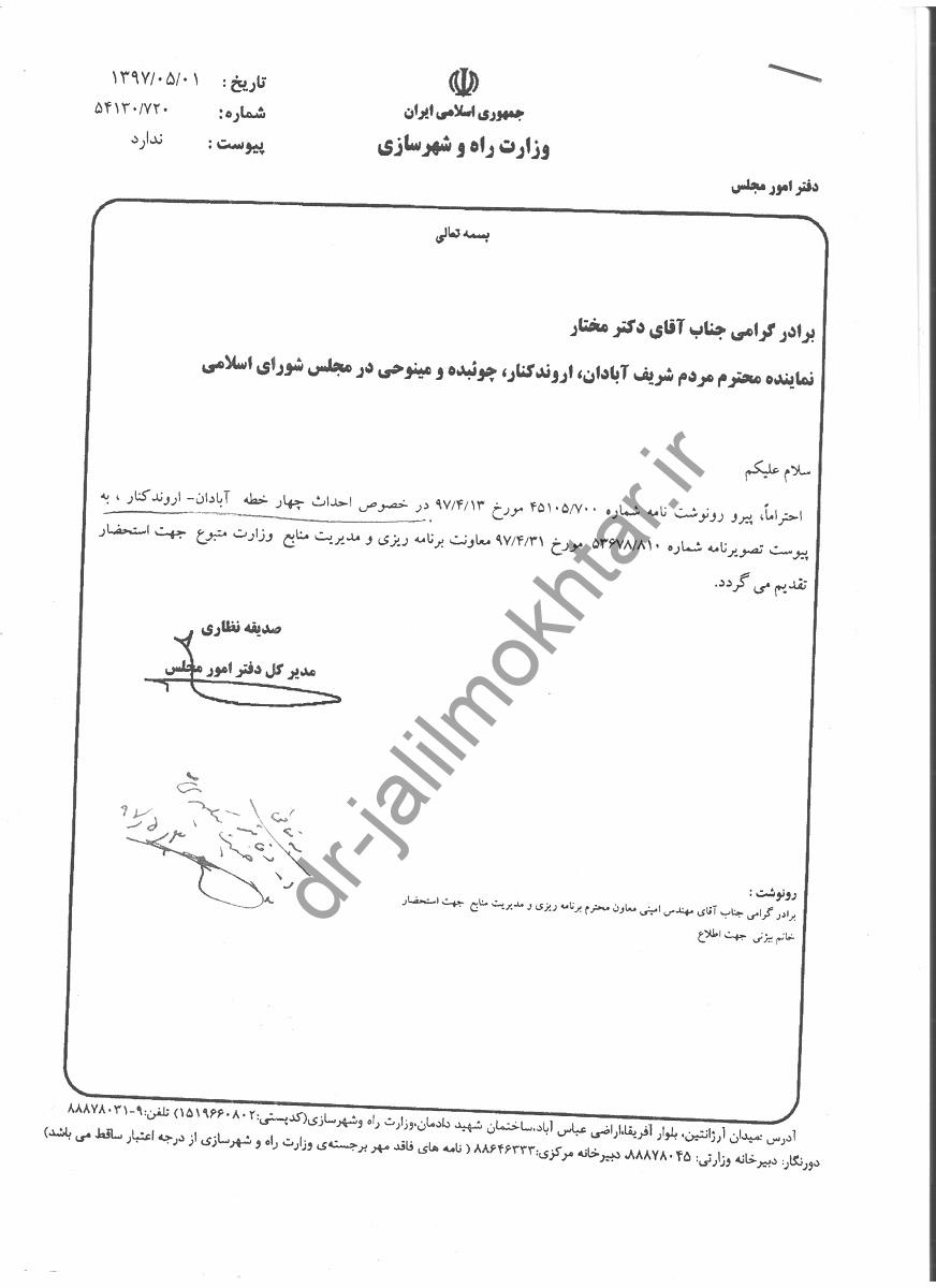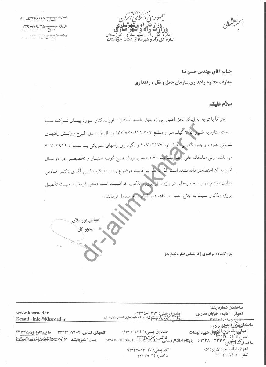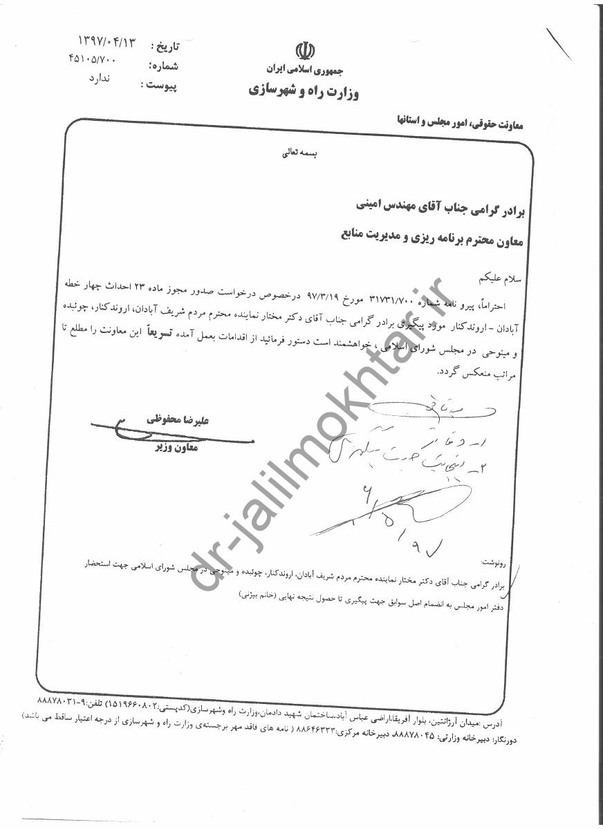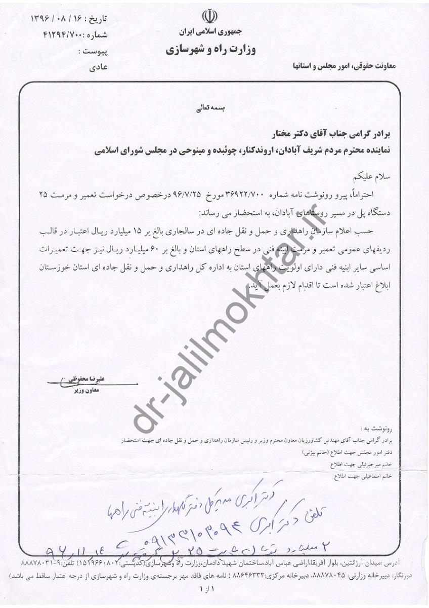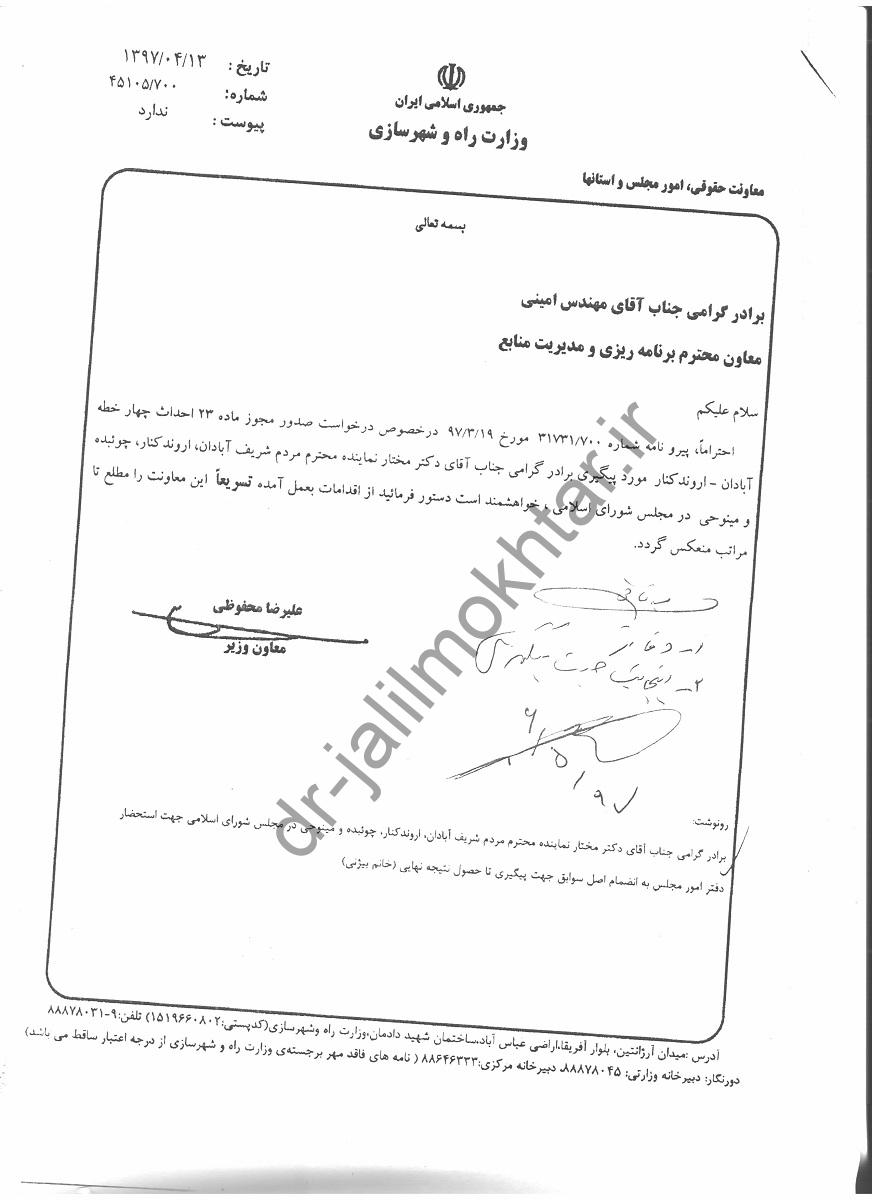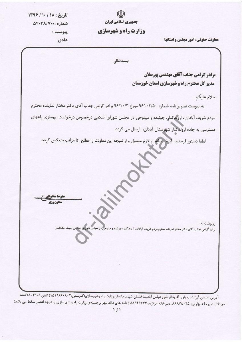 زمانی مدیر عامل سازمان منطقه آزاد اروند – غلامعباس بهرام نیا – حسن نیا عضو محترم هیات عامل و معاون راهداری – مدیر کل محترم راهداری و حمل نقل جاده ای استان خوزستان – حیدر مطاعی مدیر کل دفتر نگهداری راه ها – انصاری مشاور وزیر و مدیر کل حوزه وزارتی – امینی معاون برنامه ریزی و مدیریت منابع – دکتر آخوندی وزیر راه و شهر سازی – علی عماد مشاور و مدیر کل حوزه استانداری – علیرضا محفوظی معاون وزیر – دکتر خادمی معاون وزیر و مدیر عامل شرکت ساخت و توسعه زیربناهای حمل نقل کشوری – کشاورزیان رئیس سازمان راهداری و حمل نقل جاده ای – صدیقه نظاری مدیر کل دفتر امور مجلس –