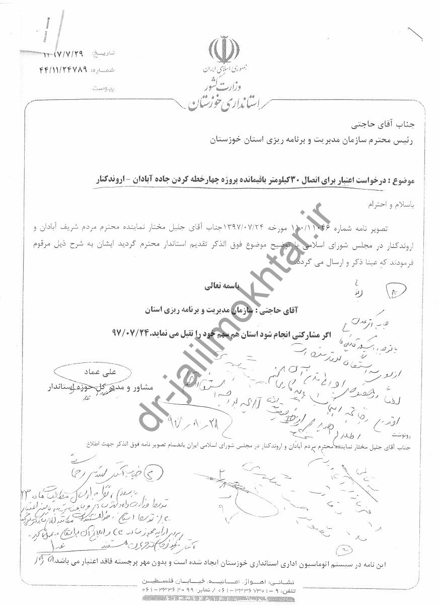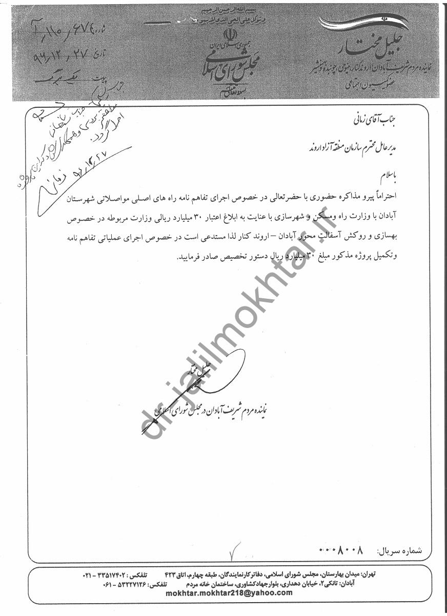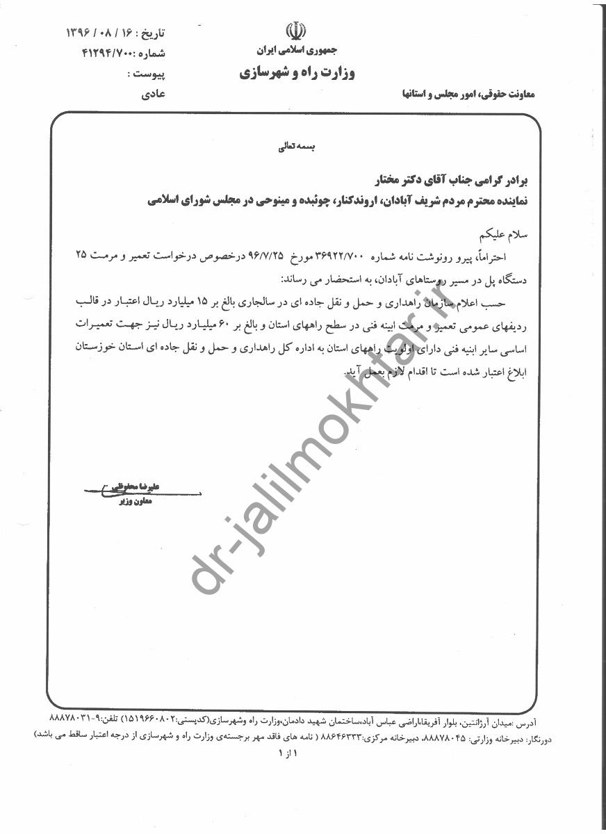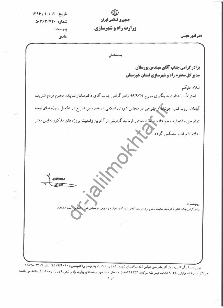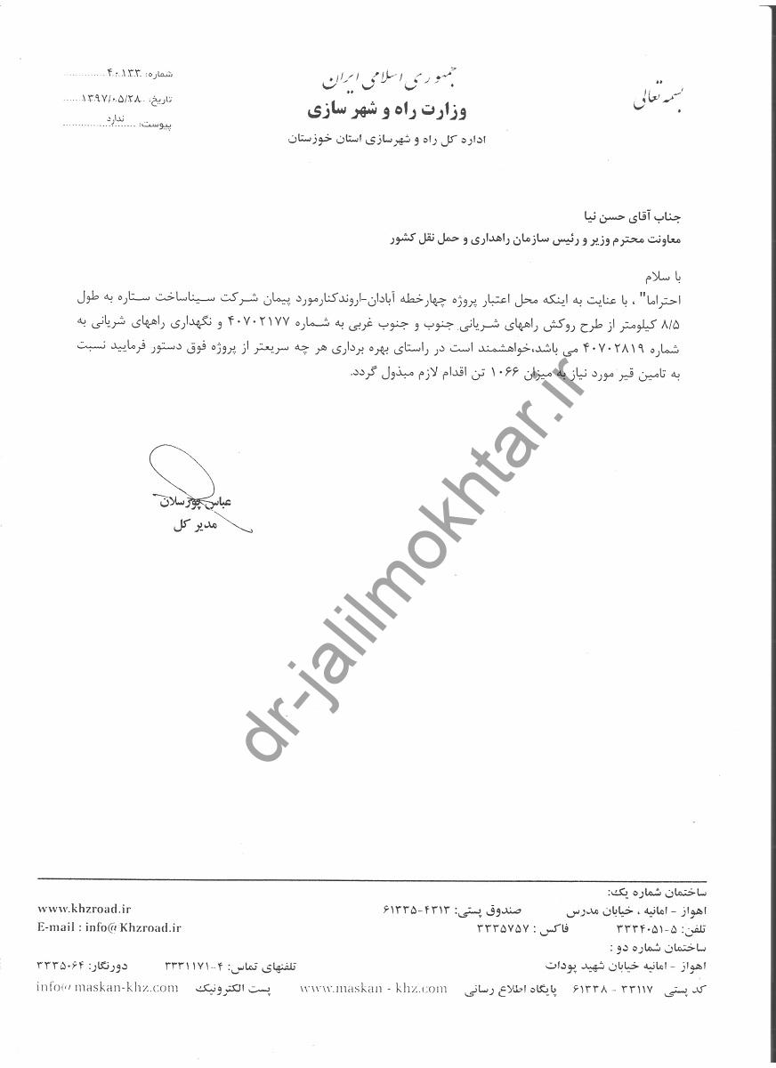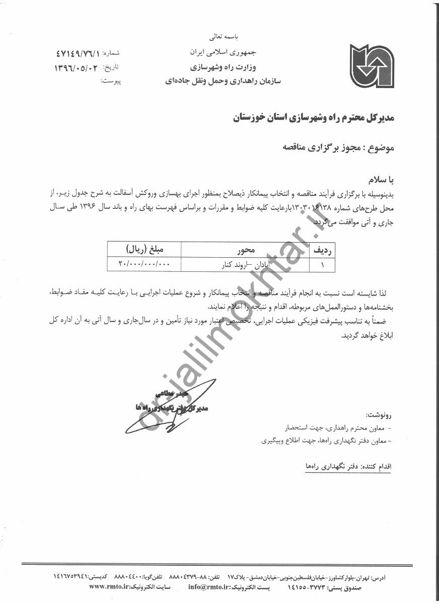 زمانی مدیر عامل سازمان منطقه آزاد اروند – غلامعباس بهرام نیا – حسن نیا عضو محترم هیات عامل و معاون راهداری – مدیر کل محترم راهداری و حمل نقل جاده ای استان خوزستان – حیدر مطاعی مدیر کل دفتر نگهداری راه ها – انصاری مشاور وزیر و مدیر کل حوزه وزارتی – امینی معاون برنامه ریزی و مدیریت منابع – دکتر آخوندی وزیر راه و شهر سازی – علی عماد مشاور و مدیر کل حوزه استانداری – علیرضا محفوظی معاون وزیر – دکتر خادمی معاون وزیر و مدیر عامل شرکت ساخت و توسعه زیربناهای حمل نقل کشوری – کشاورزیان رئیس سازمان راهداری و حمل نقل جاده ای – صدیقه نظاری مدیر کل دفتر امور مجلس –