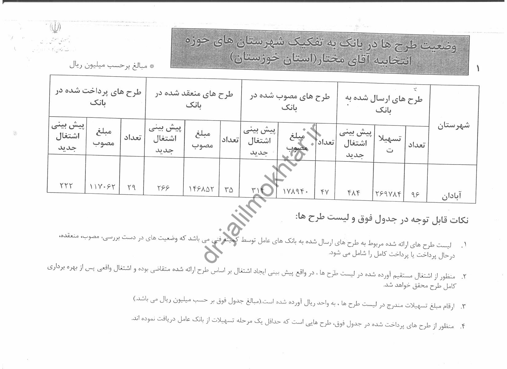 - آخرین وضعیت طرح ها در بانک – شهرستان آبادان