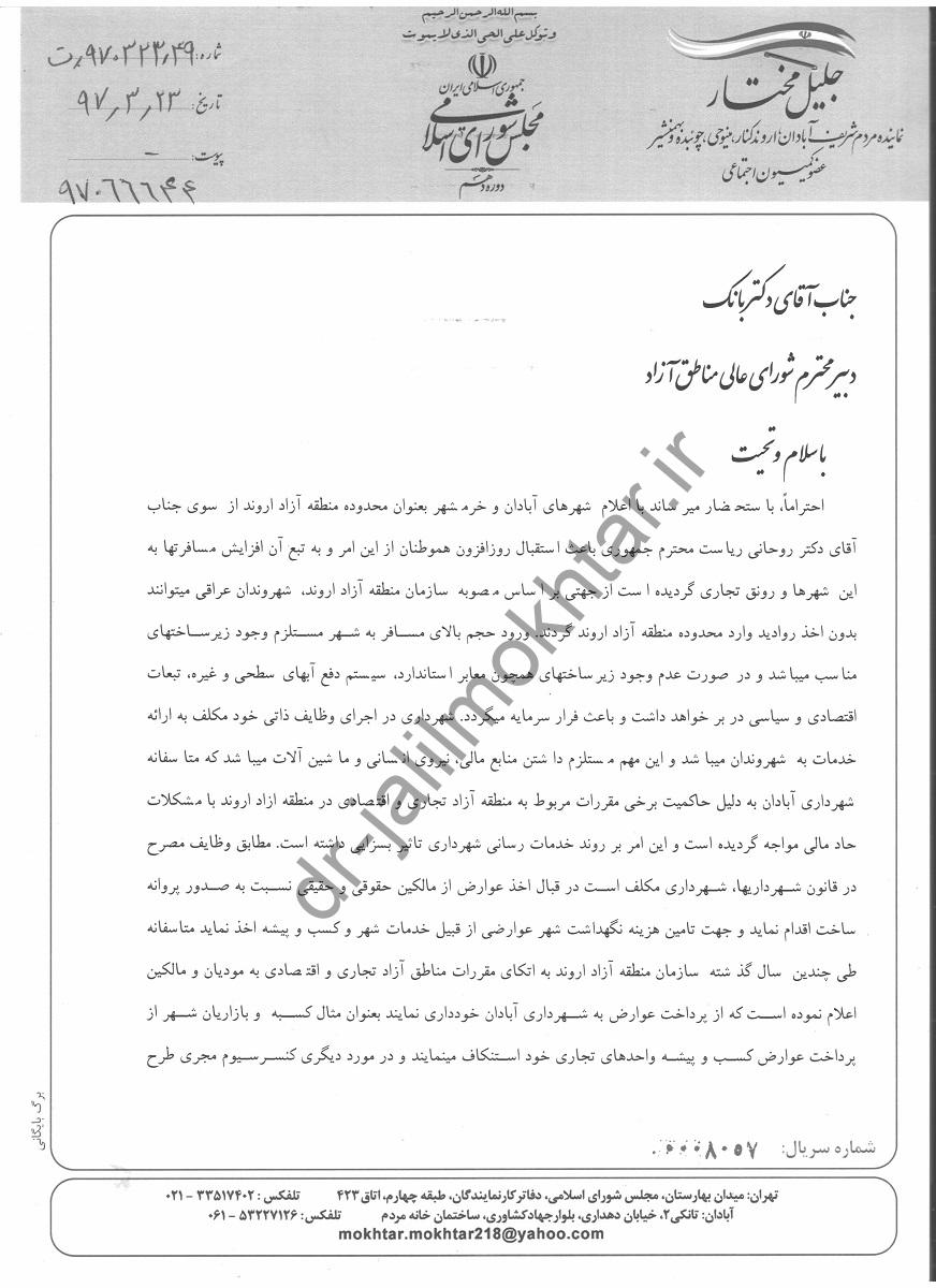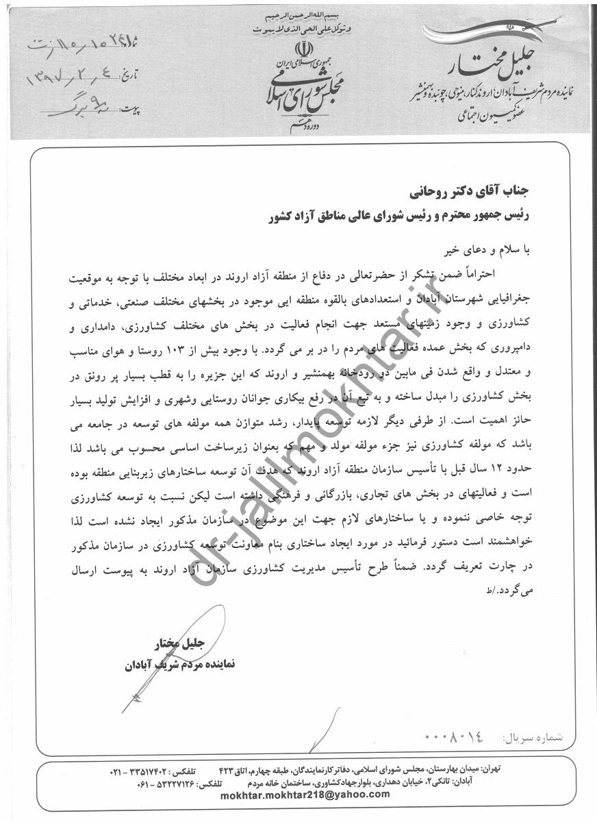 چکیده مهمترین عملکرد دکتر مختار در منطقه آزاد اروند
