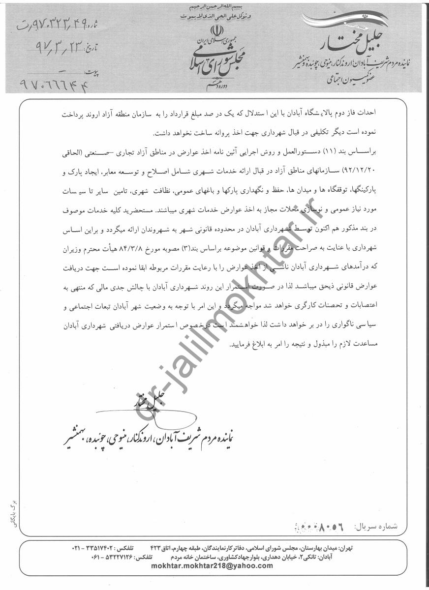 ۱-پیگیر استمرار عوارض دریافتی شهرداری آبادان: