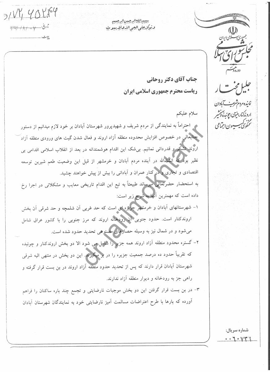 ۲-درخواست الحاق اروندکنار و چوئبده به منطقه آزاد اروند: