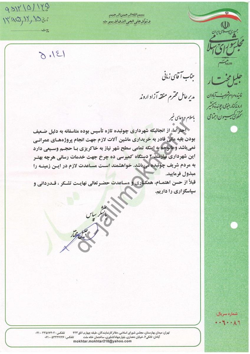 ۷-درخواست کمپرسی از منطقه آزاد اروند جهت شهرداری جدید التاسیس چوئبده: