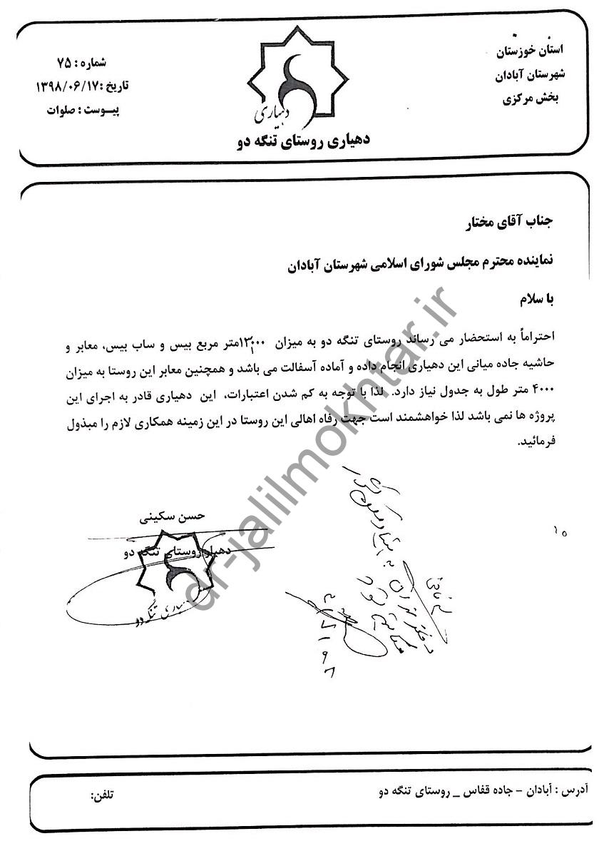 پیگیری مشکل جاشیه جاده میانی تنگه ۲