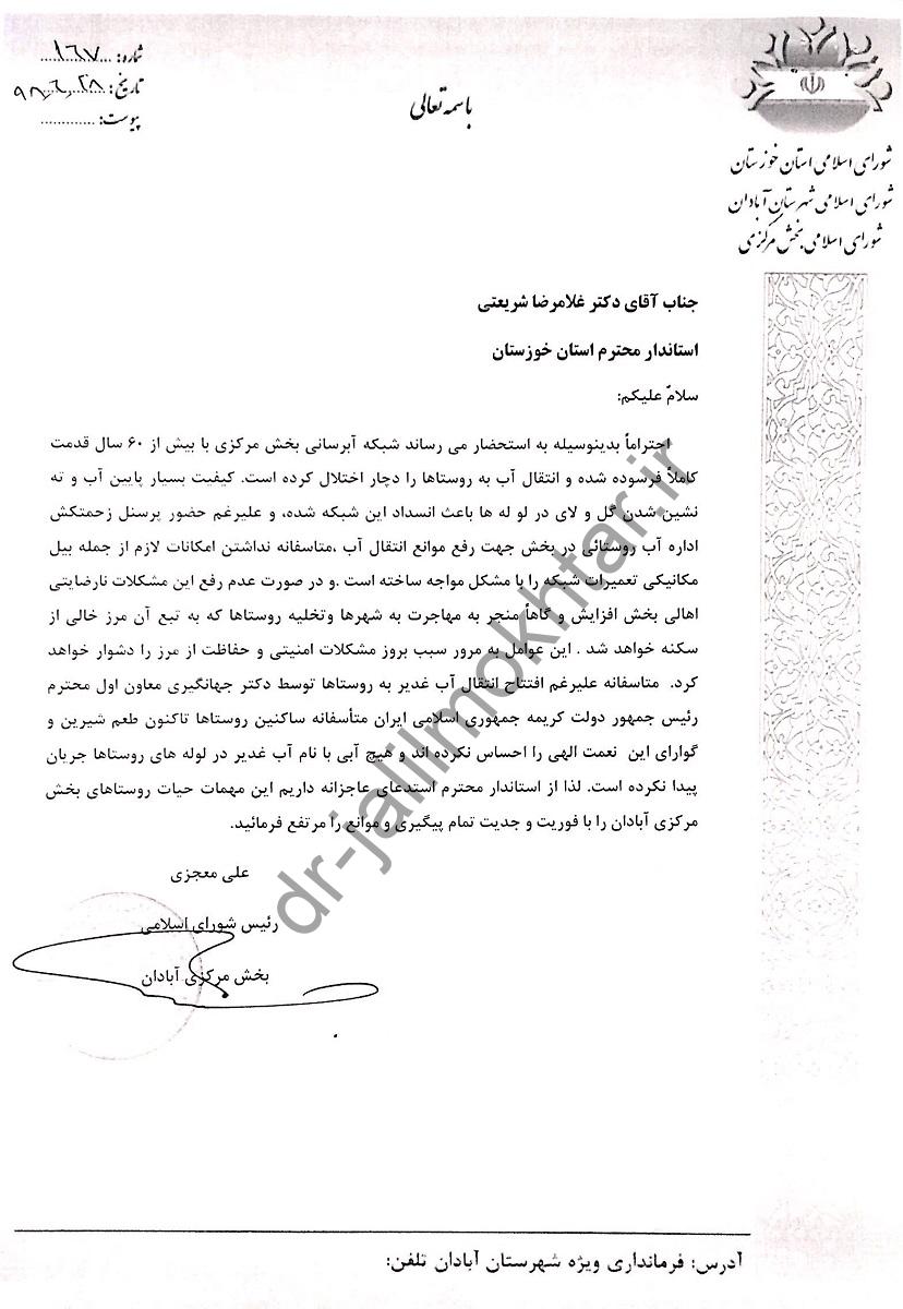 نامه ها و پیگیری هارئیس جمهور ، مجلس ، استانداری و فرمانداریشورای شهر ، شهرداری ها و دهیاری ها درخصوص تسریع در رفع مشکلات شورای بخش مرکزی آبادان توسط kh-d - اکتبر 1, 2019 اشتراکگذاری DiggMixReddItVKWhatsAppTelegramPrintCopy URL