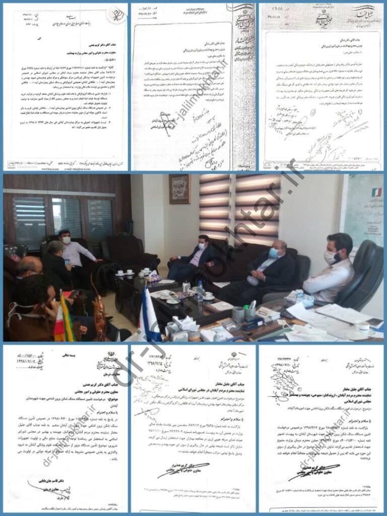 و انجام مکاتبات و رایزنی گسترده با وزارت بهداشت ، درمان و آموزش پزشکی در سال گذشته مبنی بر تأمین دستگاه آنژیوگرافی و سنگ شکن برای بیمارستان های شهید بهشتی و آیت الله طالقانی این شهرستان