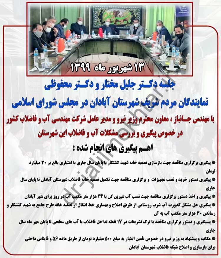در خصوص پیگیری و بررسی مشکلات آب و فاضلاب این شهرستان