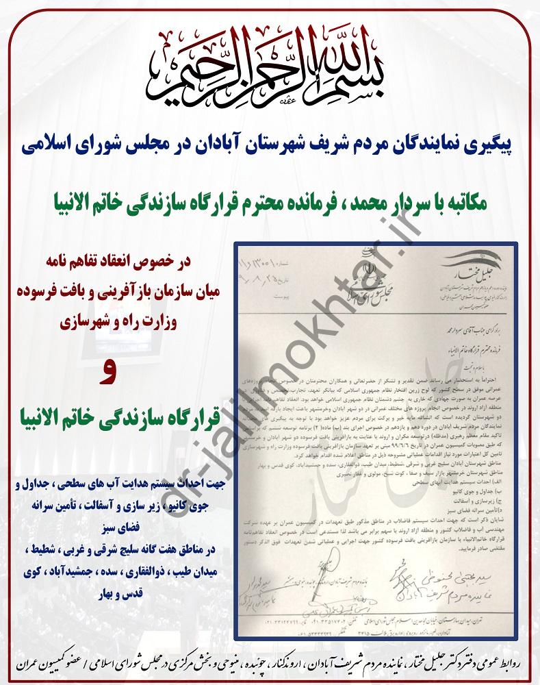 🔹مکاتبه نمایندگان مردم شریف شهرستان آبادان در مجلس شورای اسلامی