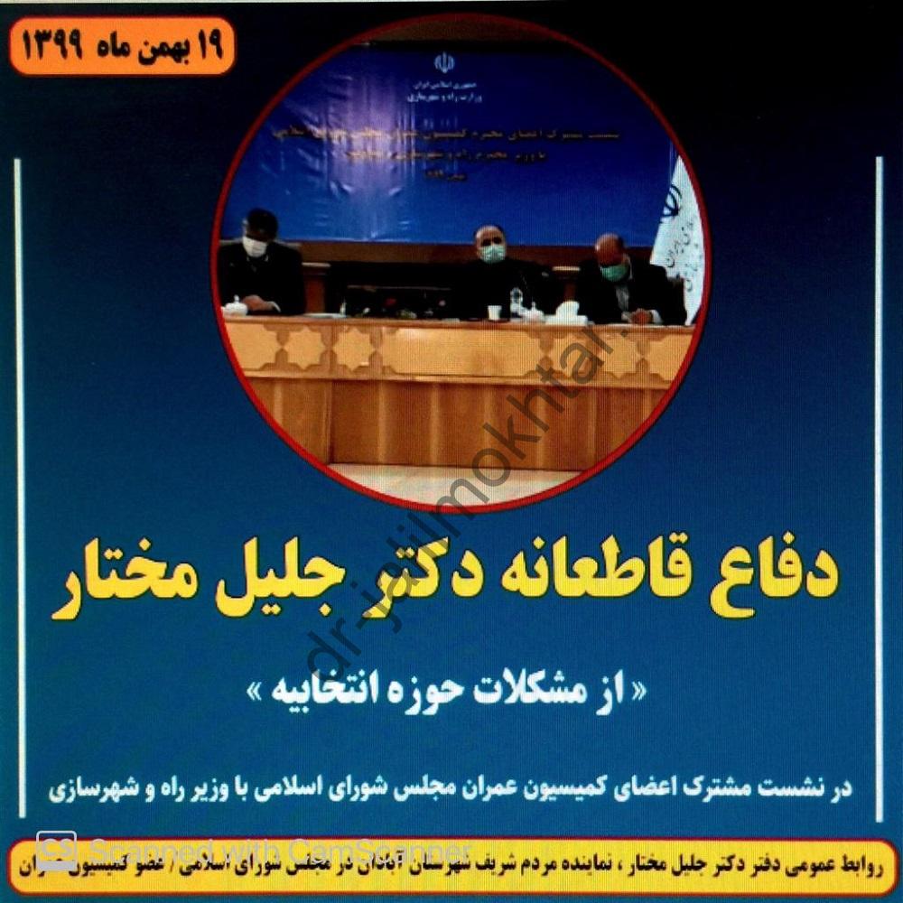 دفاع قاطعانه جلیل مختار از مشکلات حوزه انتخابیه