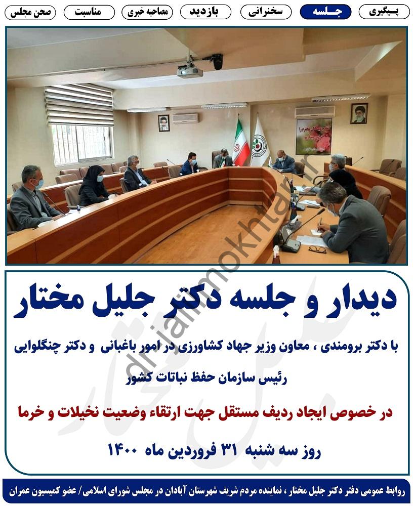 در جلسه پیگیری مشکلات کشاورزان و نخیلات شهرستان آبادان و پیگیری ایجاد ردیف مستقل جهت ارتقا وضعیت نخیلات و خرما