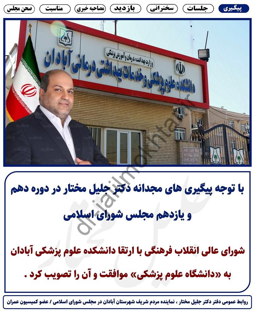 🔻با پیگیری های متعدد دکتر جلیل مختار