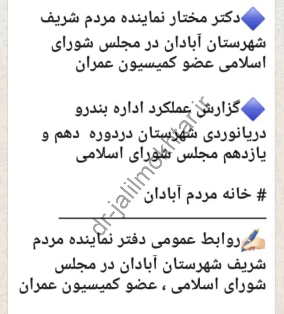 ✍🏻روابط عمومی دفتر نماینده مردم شریف شهرستان آبادان در مجلس شورای اسلامی ، عضو کمیسیون عمران