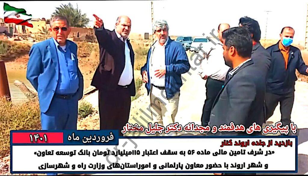 بازدید از جاده اروند کنار«در شرف تامین مالی ماده ۵۶ به سقف اعتبار ۱۱۵ میلیارد تومان بانک توسعه تعاون» و شهر اروند با حضور معاون پارلمانی و امور استان‌های وزارت راه و شهرسازی